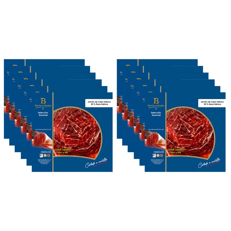 Jamón de Cebo Ibérico 50% Benito Cortado a Cuchillo en Blonda Redonda de 100Gr. Selección Gourmet